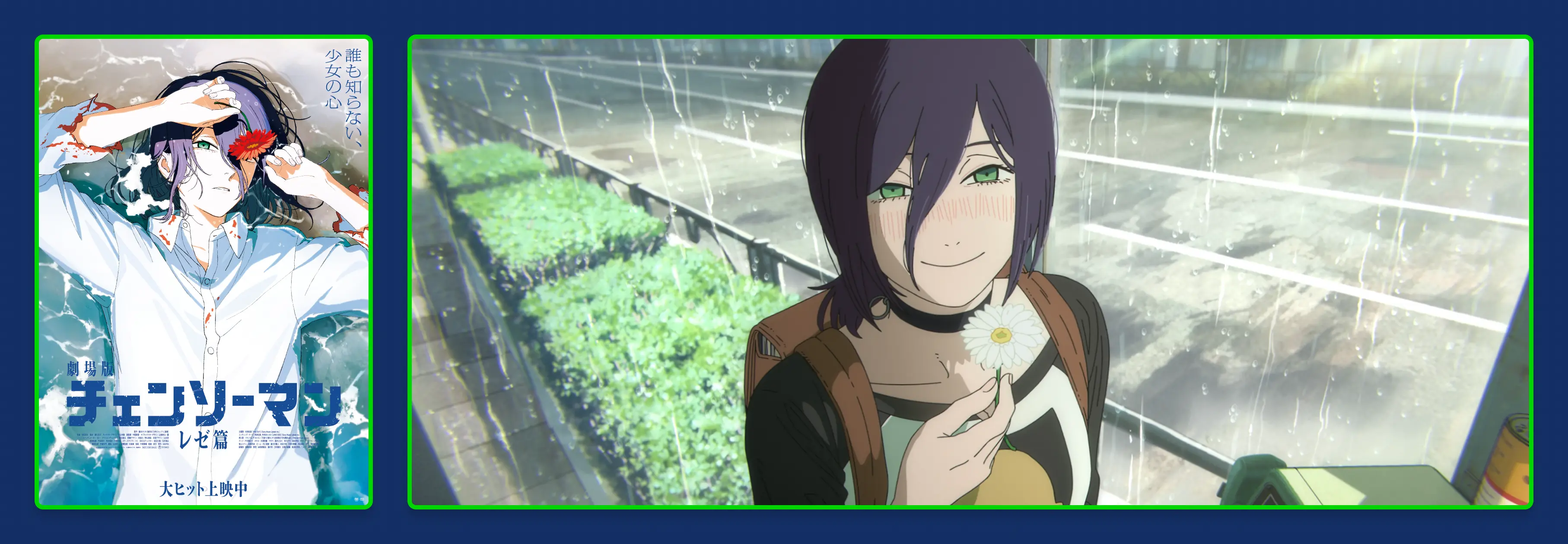然而,他们终究戴着项圈,血色的深吻撕开含情脉脉的假象,清新的日常化为狂轰滥炸的 B 级片场。全力 MAPPA 献上荡气回肠的动作盛宴,伴随着链锯和炸弹的轰鸣声,血浆喷射四溅,场面愈发癫狂,闪亮登场的「鲨卷风」极尽荒诞之能事,诠释疾风骤雨般的暴力美学。