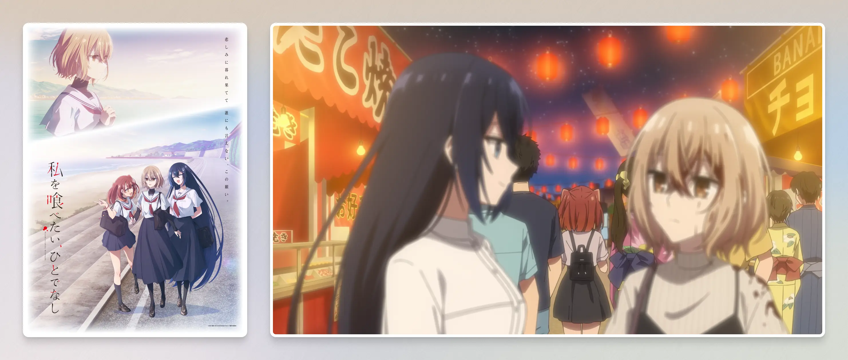 虽然校园百合作品里麻烦的女人并不罕见,本作开篇如泥沼般阴冷沉重的情绪仍能触及人心。被过去禁锢的比名子,已然丧失了生活的动力,只是浑浑噩噩地重复着每一天,等待终将到来的死亡。想吃掉她的非人少女,却也是带来救赎的希望之光,毕竟,只有一步步解开心结,重拾对未来的向往后,才是口感适宜的最佳赏味期。